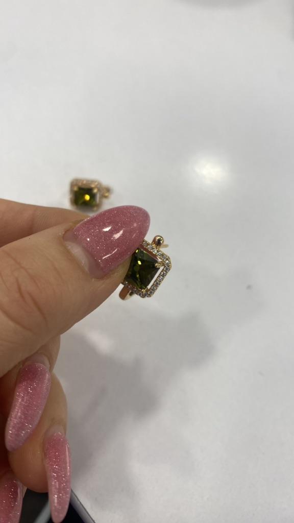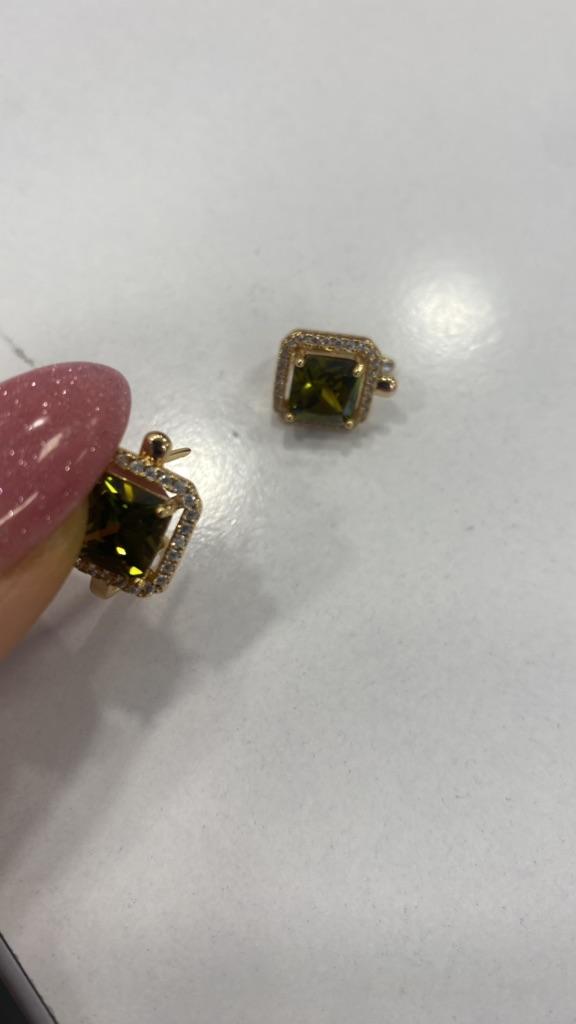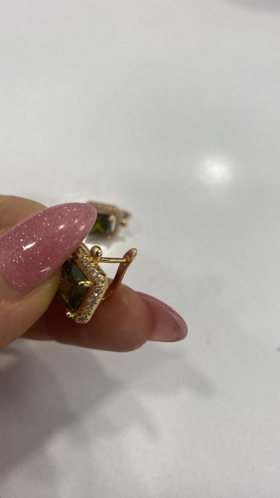 Moda złoty kolor kwadratowy cięcie zielony kamień klip Drop Dangle kolczyki damskie ślubne księżniczka biżuteria prezent