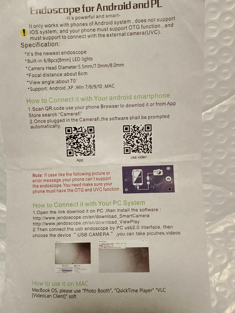 endoskop robi to co ma robić.... Jestem mega zadowolony, tylko aplikacja nie działała... Pobrałem jeszcze jedną z App Store. Jakość obrazu jest w porządku