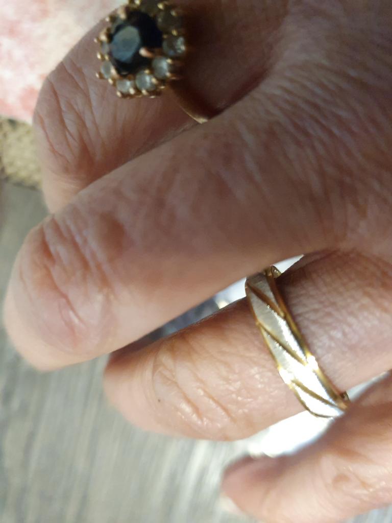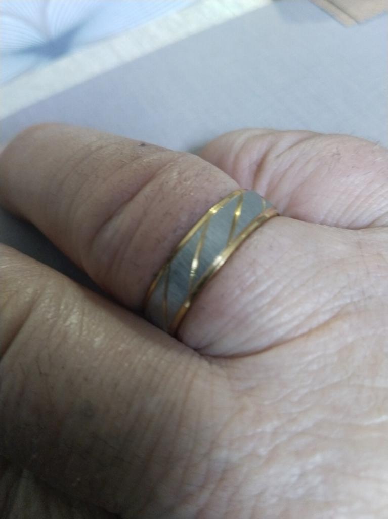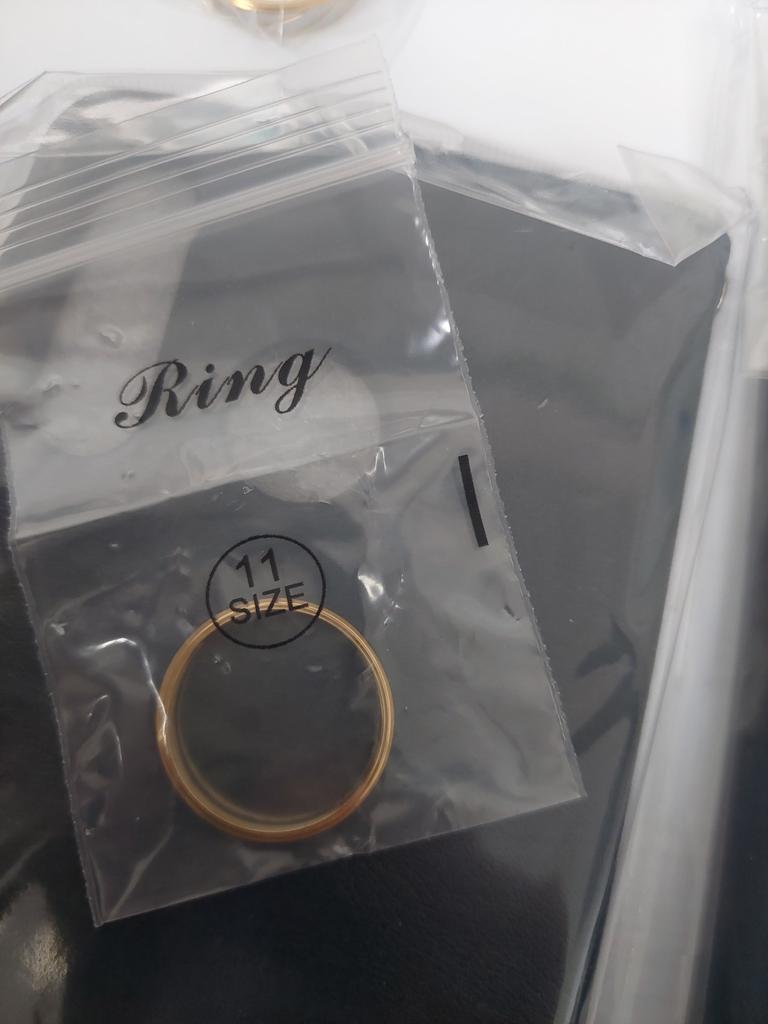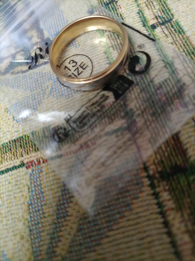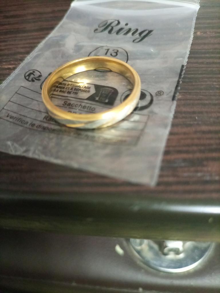 Pierścień jest 9-męski, złoty, za mały. Więc może możesz wysłać rozmiar 10.