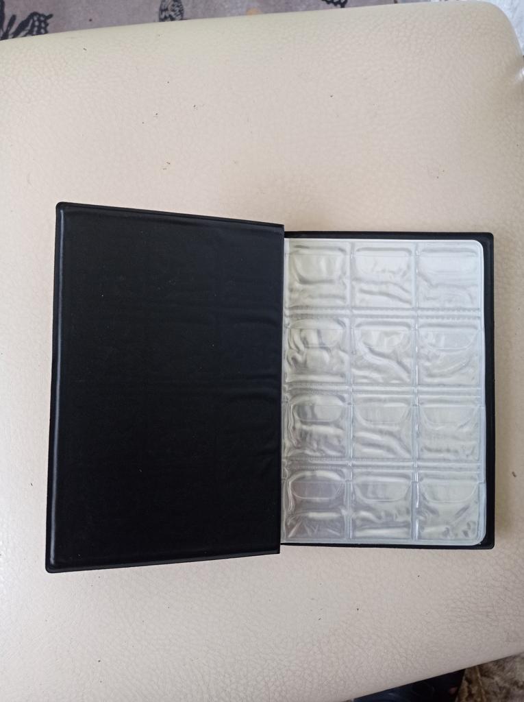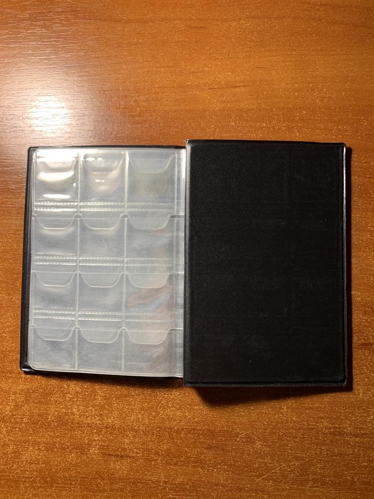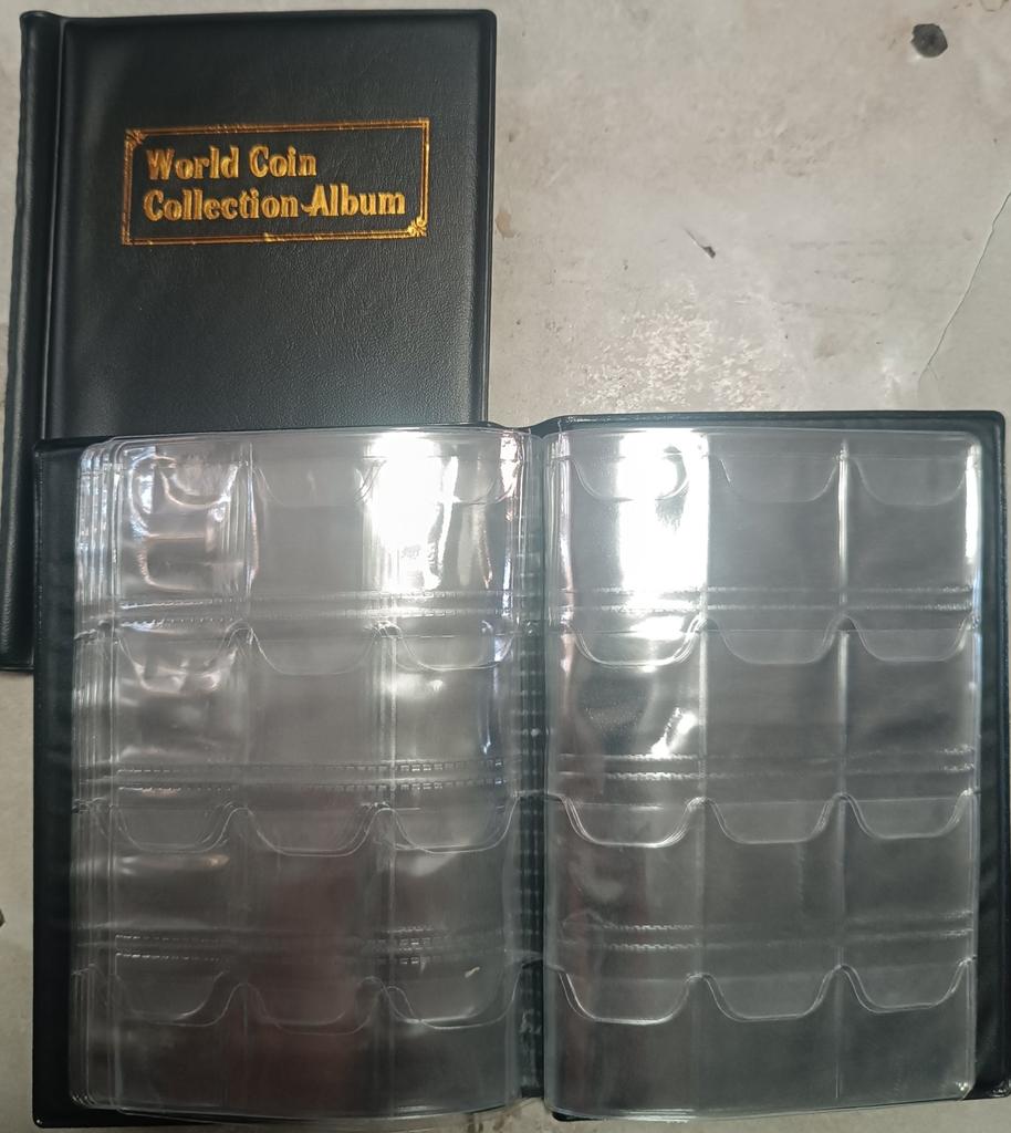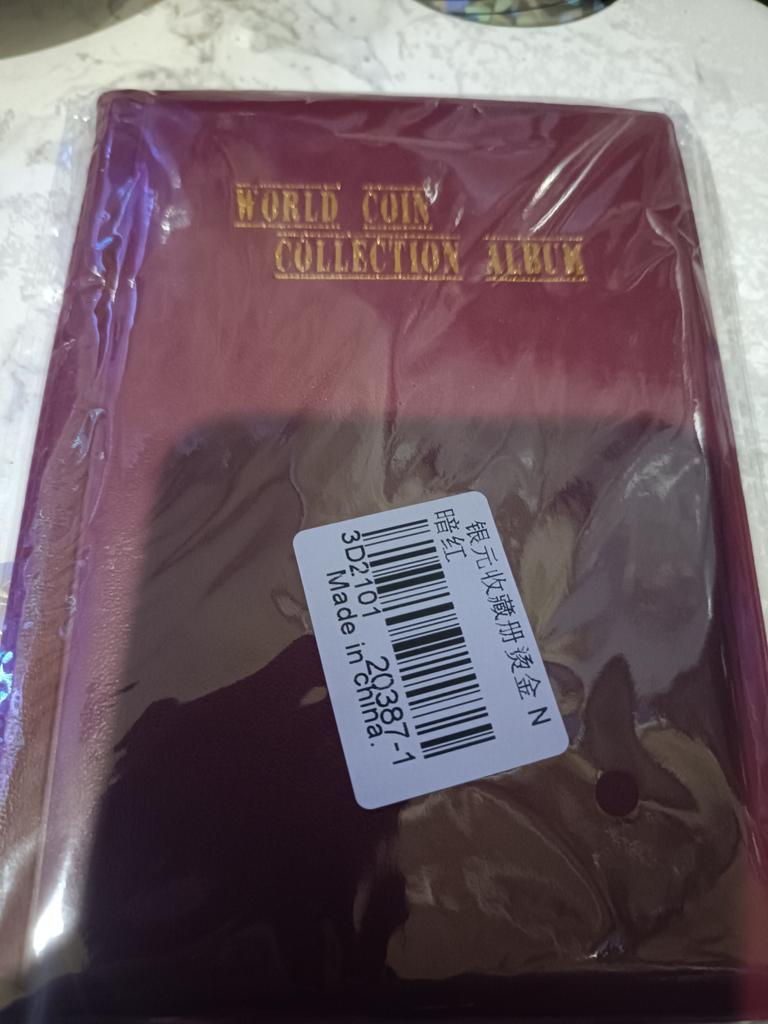 fajny, stylowy album na monety, posiada 10 stron z kieszonkami. 12 kieszeni na jednej stronie (jednostronne). Album pachnie gumą (jak dmuchane zabawki do pływania po wodzie). w „kieszeniach” mieszczą się wyłącznie monety o średnicy około 23,4 mm.