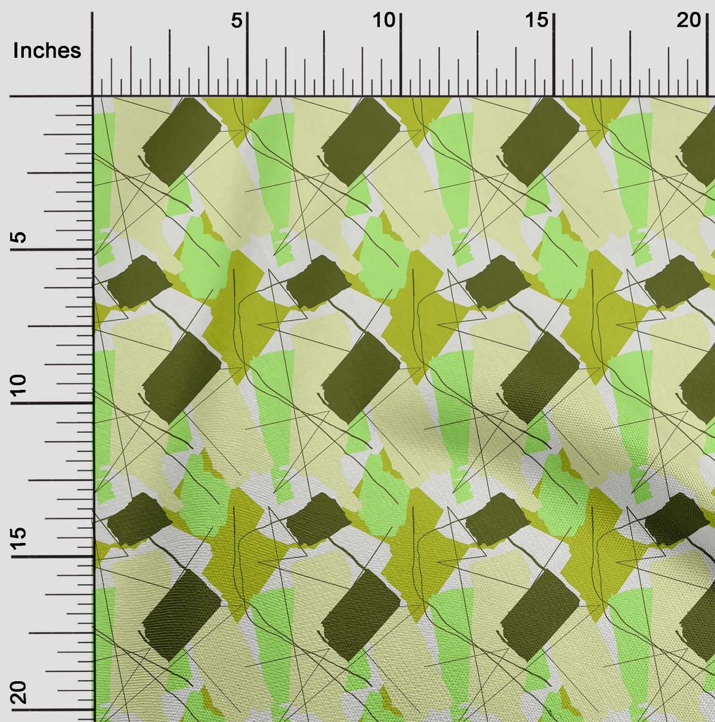 oneOone Cotton Flex Olive Green Fabric Triangle & Brush Stroke Abstract Diy Clothing Quilting Fabric Print Fabric By Yard 40 Inch