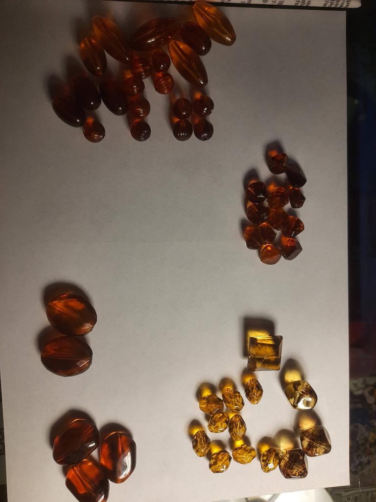 Zamówienie zostało dostarczone w ciągu 2 tygodni. Koraliki o różnych kształtach, rozmiarach i kolorach. Około 9 gatunków. Wyglądają jak bursztyn.