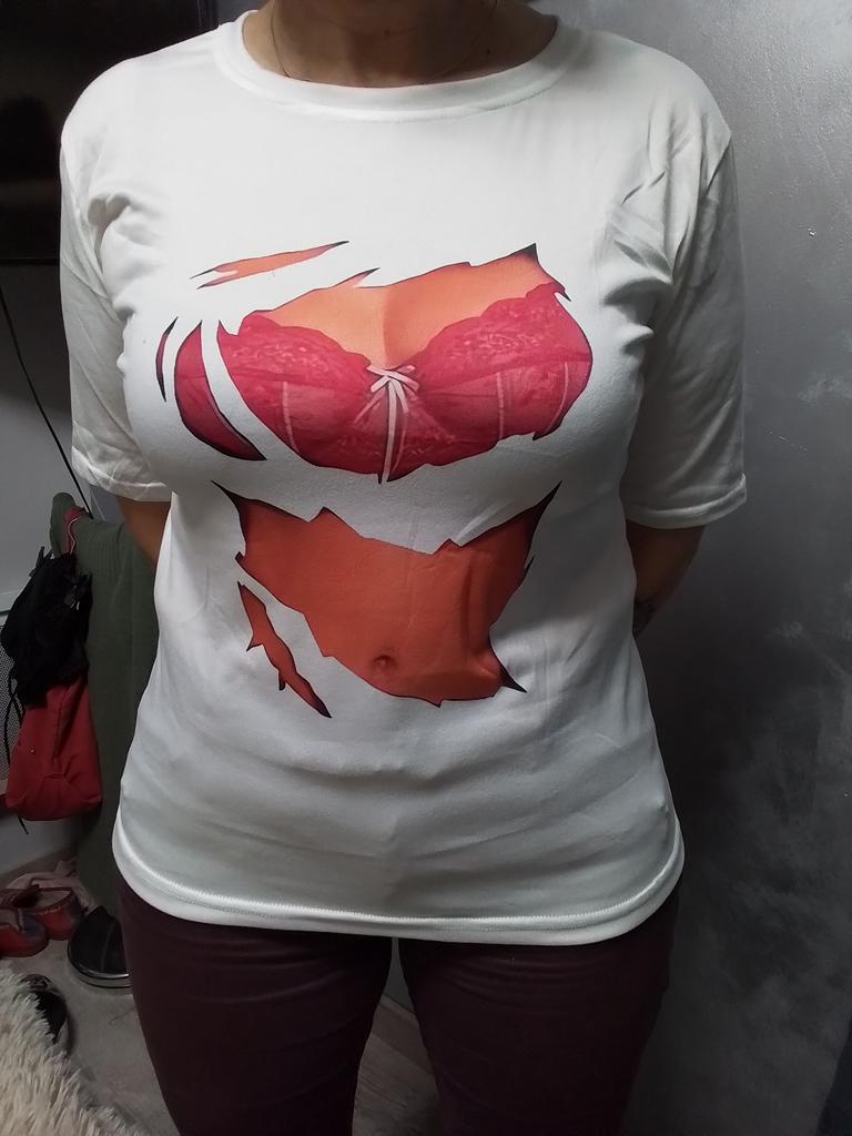 Duże cycki T Shirt damski seksowny brzuch Pack Abs drukuj lato z krótkim rękawem kreatywny wzór śmieszne kobiety modalne koszulki w stylu Harajuku Tees