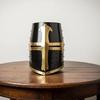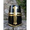 Przeklęty krzyżowiec z czystej mosiężnej stali, czarny, funkcjonalny, wielki hełm, rycerski hełm kubełkowy