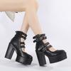 Gdgydh Metalowe nitowane obcasy blokowe platformy botki damskie czarna skórzana klamra gotyckie estetyczne wysokie obcasy buty drążony zamek błyskawiczny
