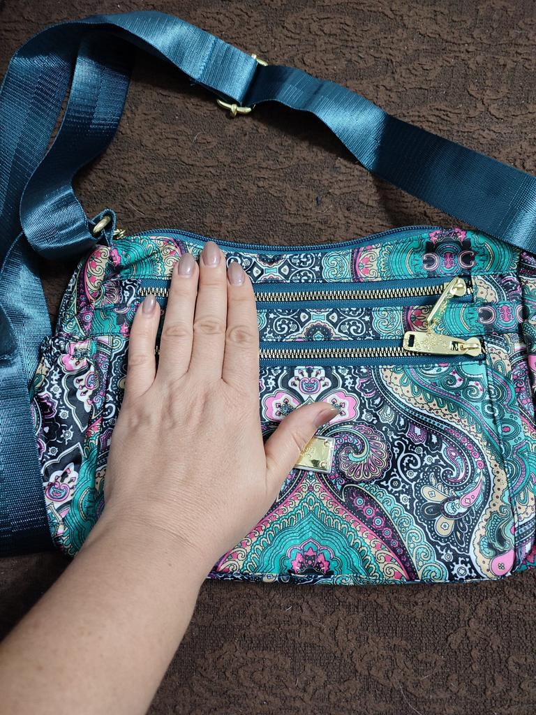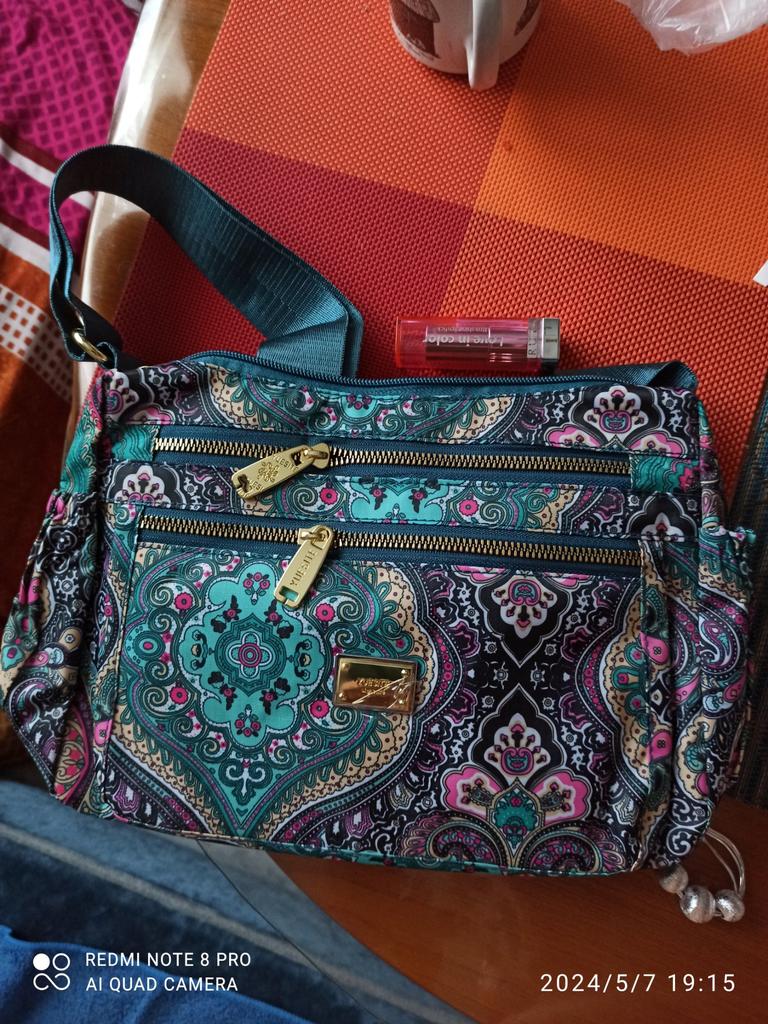 Śliczna torebka, wysokiej jakości materiał, bardzo dużo kieszeni.