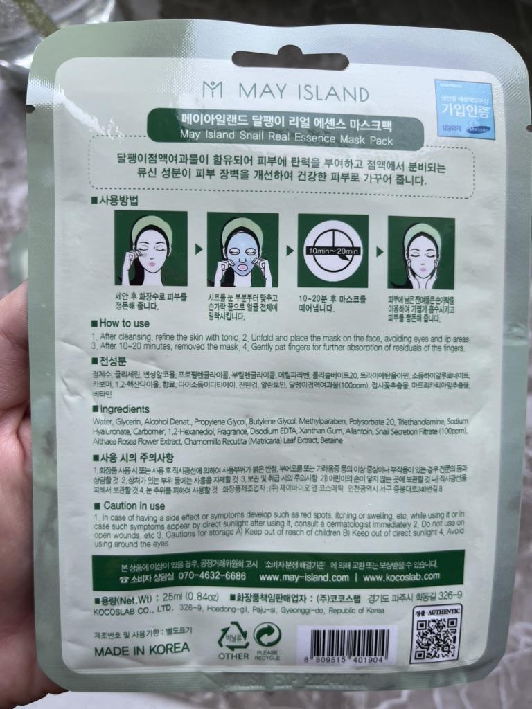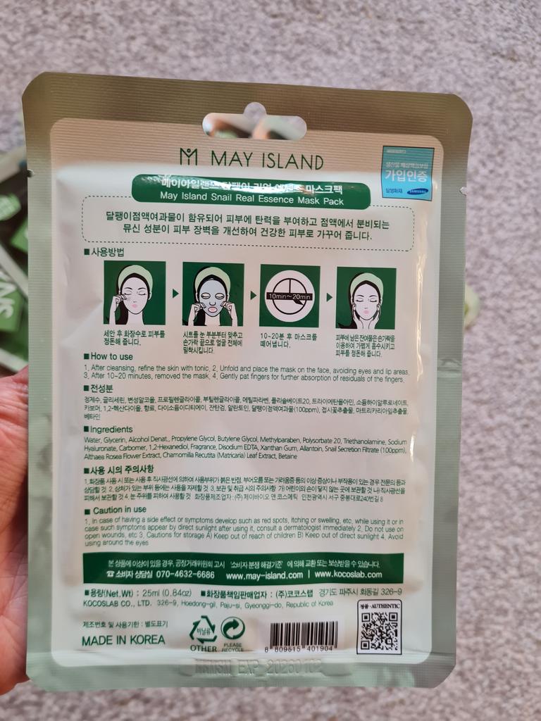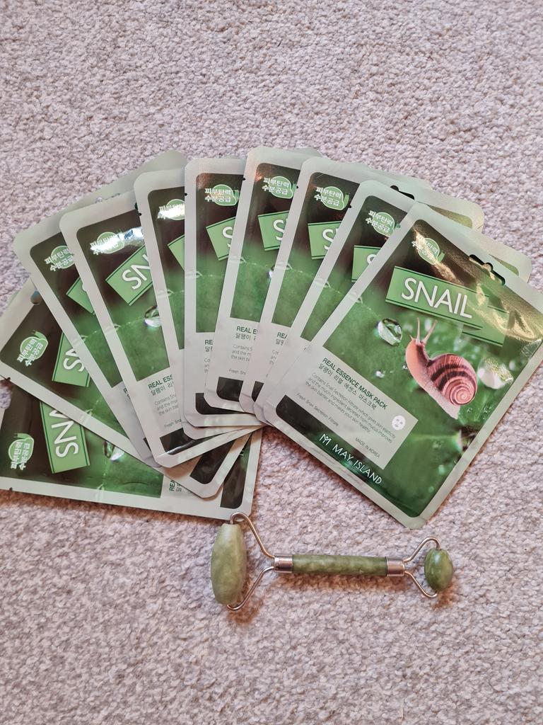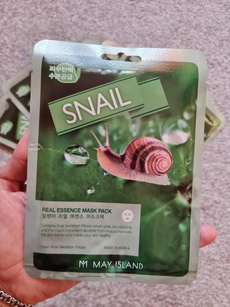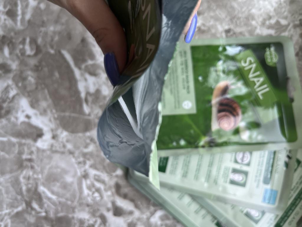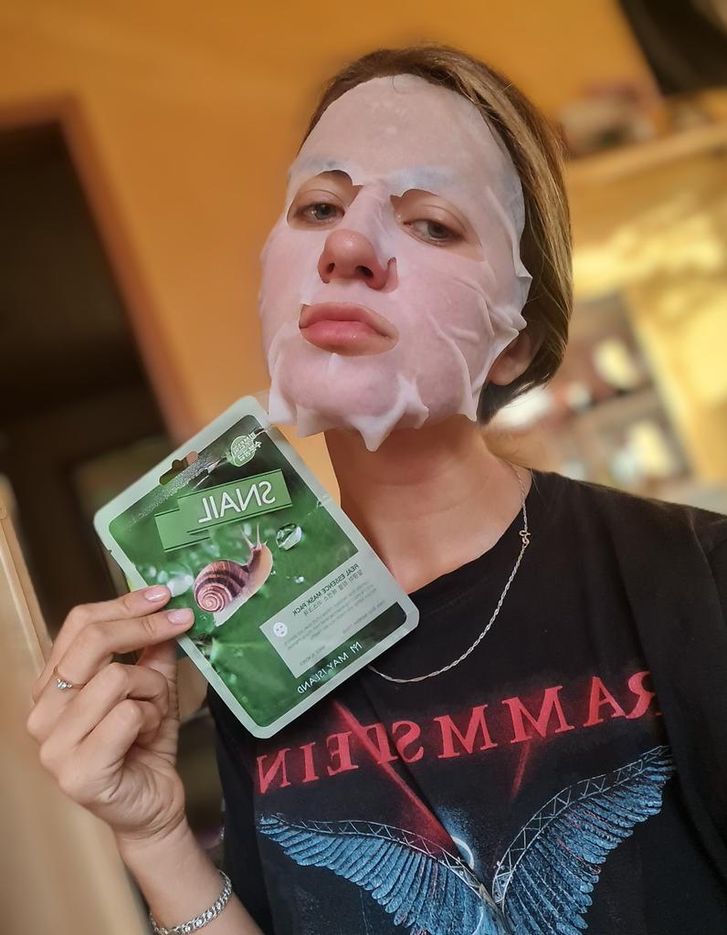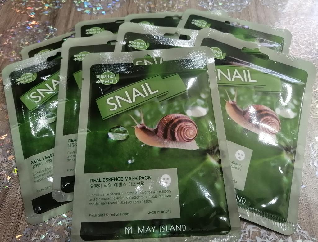 Zestaw masek ze śluzem ślimaka 🐌 Marca: Wyspa Majowa Zestaw składający się z dziesięciu pojedynczych masek. Są to maseczki materiałowe, które można nałożyć na twarz po oczyszczeniu i uzupełnić pielęgnację twarzy. Są to maseczki wyprodukowane w Korei, kosmetyki w 100% koreańskie. Kosmetyki koreańskie cieszą się dużą popularnością ze względu na swoje duże możliwości i setki zalet.. Ta szczególna maska pomaga ożywić skórę. Nawilża, rozświetla i zapewnia elastyczność. Ponadto śluz ślimaka jest bardzo korzystny ze względu na swoje właściwości lecznicze na rany i ślady trądziku.. Należy go nałożyć na twarz, pozostawiając na co najmniej trzydzieści światów (osobiście zostawiam go trochę więcej). Resztki produktu, które mogą pozostać w pojemniku, można położyć na łokciach lub nawet na szyi i ramionach. Produkt wysokiej jakości, o świeżej konsystencji i przyjemnym aromacie, zdecydowanie polecam!