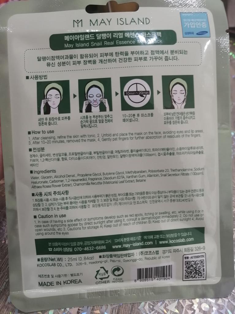 🌟Maseczka do twarzy Mayisland🌟 Lubię dbać o swoją skórę, a te maseczki z Korei to niesamowity zabieg upiększający❤️❤️❤️❤️ Produkt w pełni spełnił moje oczekiwania🤩🤩🤩 🌈 WYSYŁKA bardzo szybki. W ciągu dwóch tygodni otrzymałem produkt 🌈 KOLORY Opakowanie zawiera 10 maseczek 5 różnych typów 💯💯💯 🌟WNIOSEK Produkt wydaje mi się dobrej jakości i polecam go. 👍👍👍👍