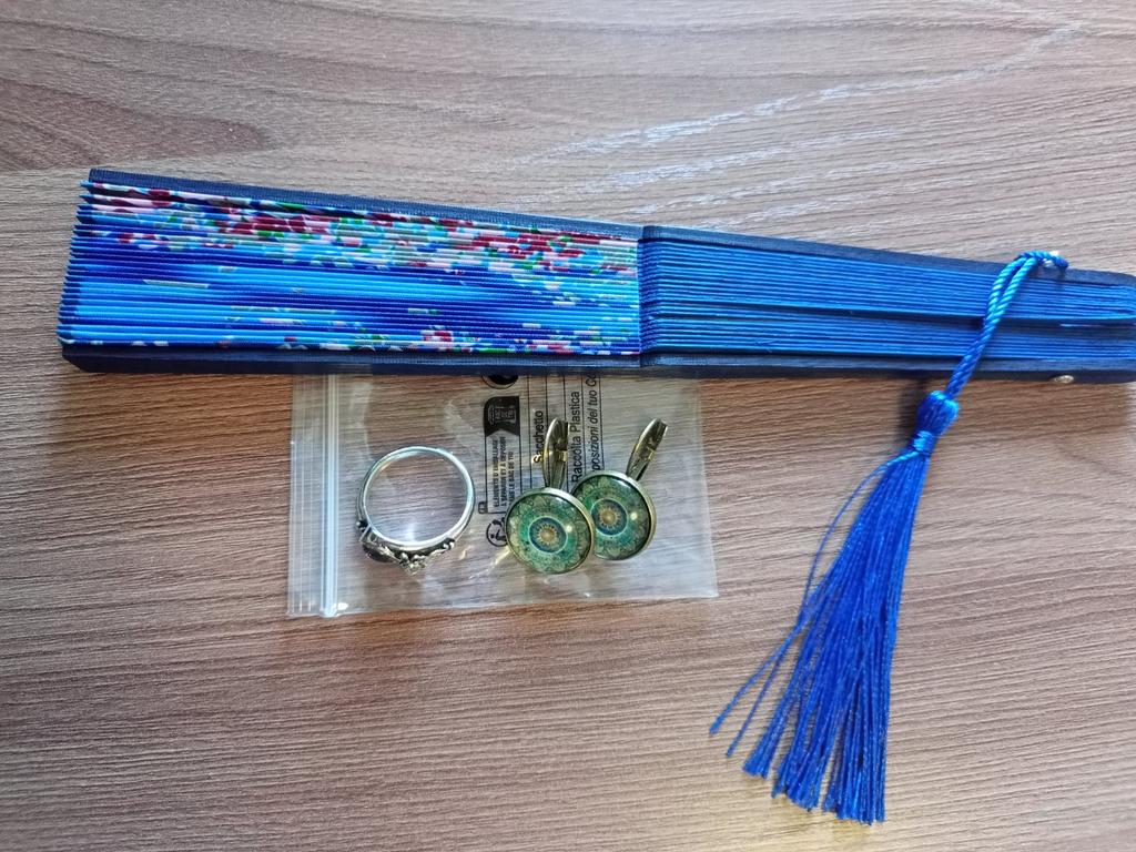 Zawieszka od razu zeszła, a kolor nie jest tak nasycony jak na zdjęciu. Materiał jest tani i niezbyt przyjemny w dotyku, wszystko jest bardzo cienkie. Wachlarz jest krótki, ciężko się go składa, trzeba każdą fałdę wypełnić osobno. Generalnie nie jest wart tych pieniędzy