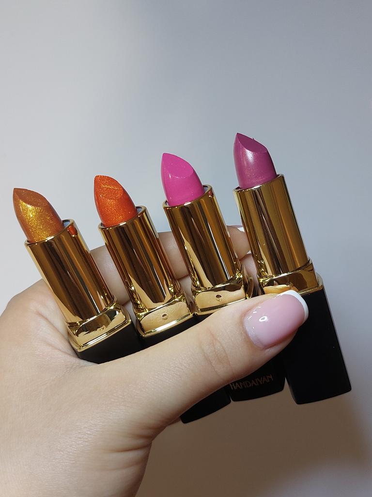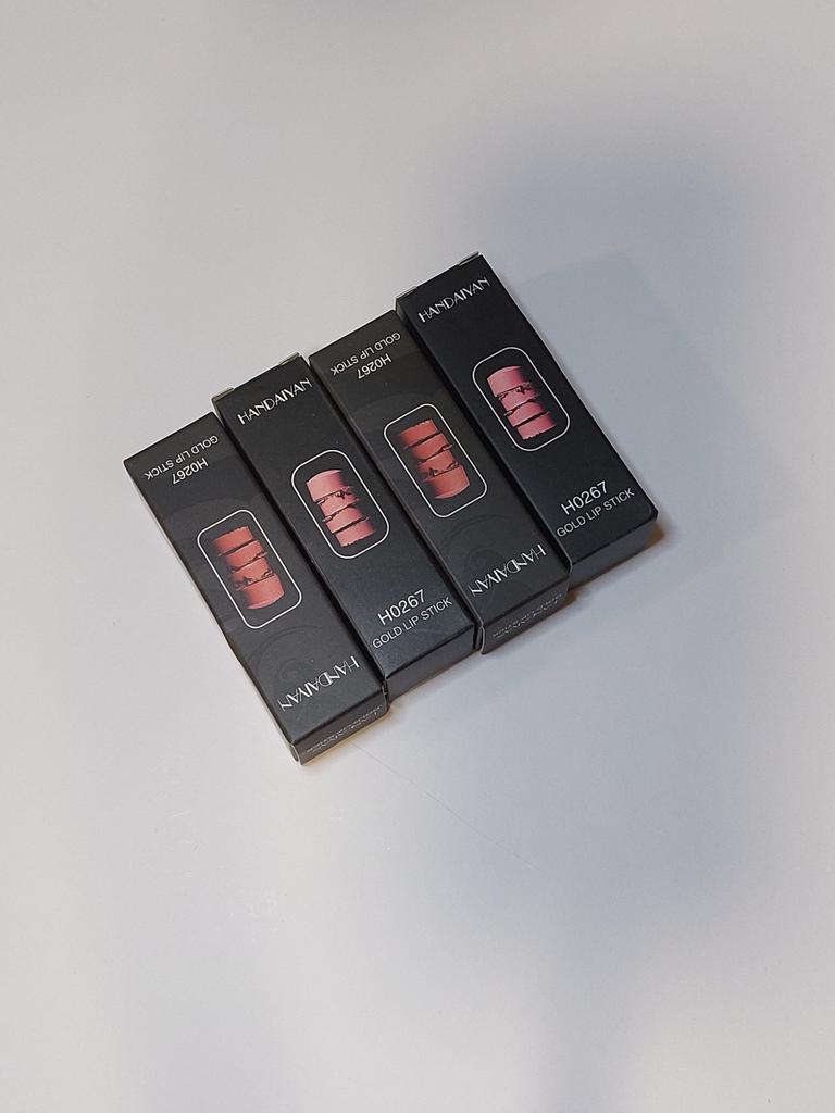 Zestaw 4 szminek 📦 Dostawa na Ukrainę 3 tygodnie. 📍Zapakowane w blister. Paczka dotarła bez uszkodzeń. 📍Oczywiście opakowanie jest wykonane z taniego plastiku. Ale za takie pieniądze projekt i jakość są doskonałe. 📍Każda pomadka zapakowana jest w osobne pudełko. Zestawy szminek dostępne są w różnych odcieniach. Wybrałam ten ze względu na złocisty odcień. 📍Szminki pachną czekoladą. Pigmentacja przeciętna, ale jeśli nałożysz ją warstwami uzyskasz nasycony kolor. Lśniący Niestabilny. Po zmyciu na ustach pozostaje delikatny odcień, jak po zabarwieniu. 📍Chcę także podziękować sprzedawcy za drobny upominek ❤️🔥 ✅️Polecam sprzedawcę i produkt ✅️ 💰Kupiony za 5,94 €
