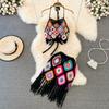 Wakacje na plaży Retro zestaw z dzianiny kobiety Halter Mini kamizelka na ramiączkach + krótka spódnica z frędzlami moda lato seksowny garnitur dwuczęściowy