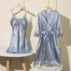 Piżama damska wygodny seksowny dwuczęściowy zestaw domowej bielizny jedwabny cienki odcinek z wkładką na klatkę piersiową Sling koszula nocna damska koszula nocna