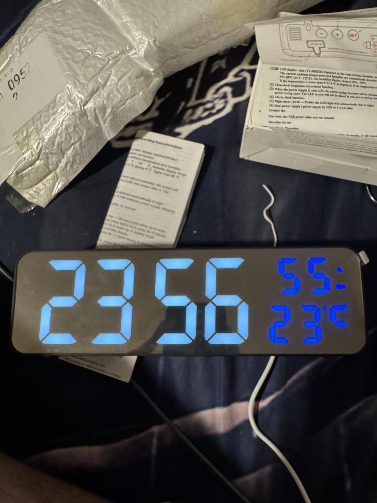 Pierwsze wrażenie jest świetne. Są 3 poziomy jasności. Działa zarówno z sieci (USB), jak i na 3 baterie AAA. Cyfry są duże.