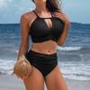 CHARMLEAKS Damski zestaw bikini na co dzień Crop Hollow Out dwuczęściowy zestaw strój kąpielowy w jednolitym kolorze