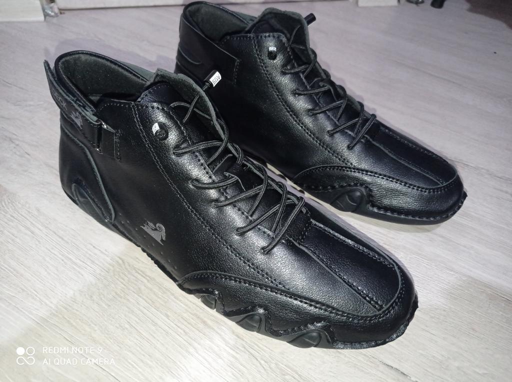 Cholewka buta NIE jest skórzana, CAŁKOWICIE wodoodporna, rozmiar 47 jest mniejszy niż 46, bardzo wąski - takiej samej szerokości jak rozmiar 40, wewnętrzna część podeszwy jest uformowana do wewnętrznej części stopy