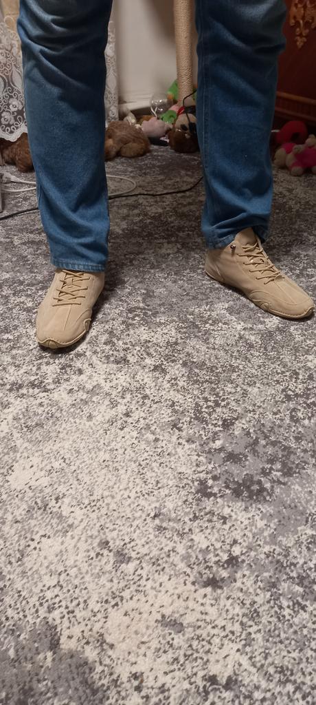 Wygodne sneakersy, przypominające trochę buty na gołą stopę. Ale nie spodziewaj się prawdziwej skóry i ręcznie robionego we Włoszech, jak gdzieś napisano. Nie dałem się nabrać, nie za tę cenę. To dobrej jakości PU. Dostawa do Holandii trwała 18 dni.