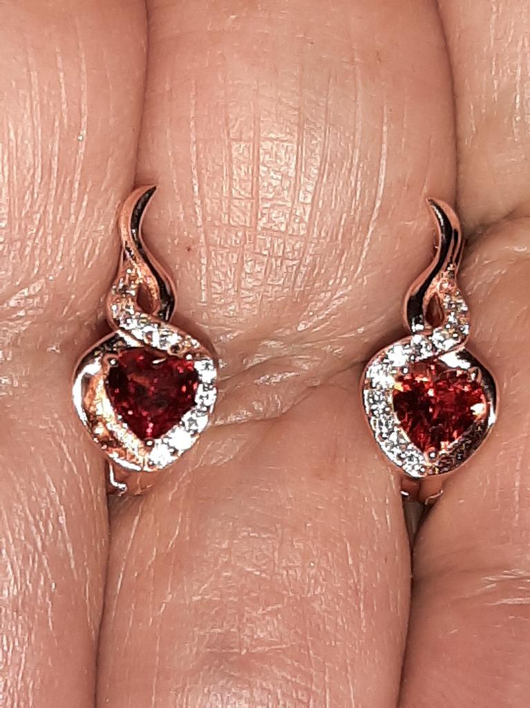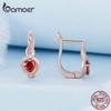 BAMOER 925 Sterling Silver Love & Bond klipsy do uszu różowe złoto czerwone serce klamry do uszu dla kobiet urodziny Fine Jewelry