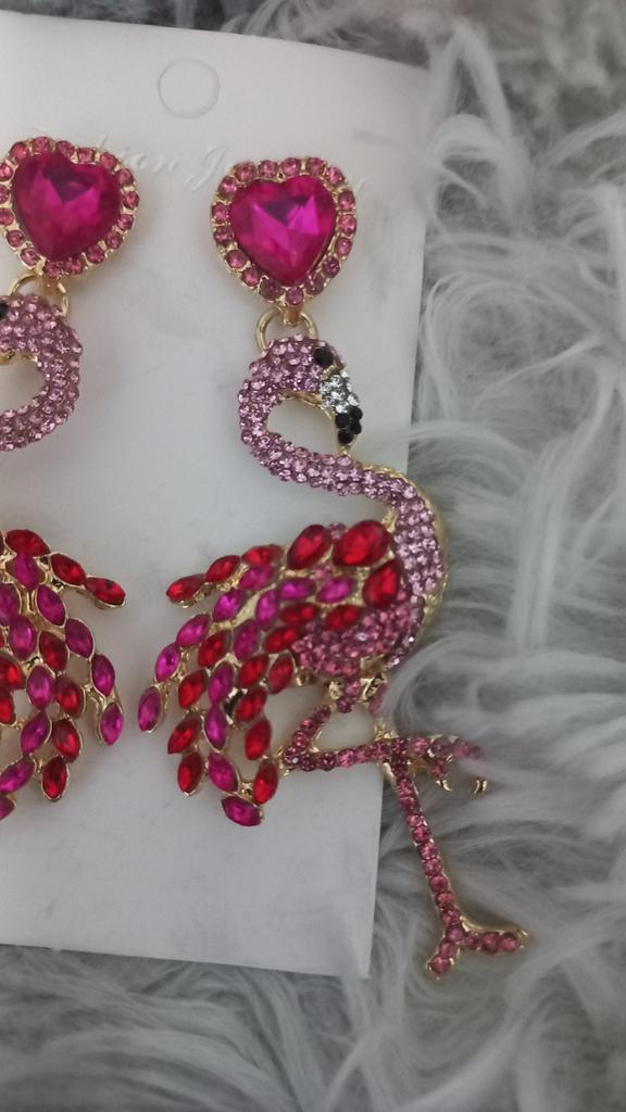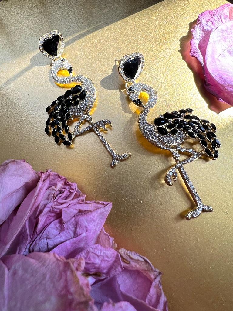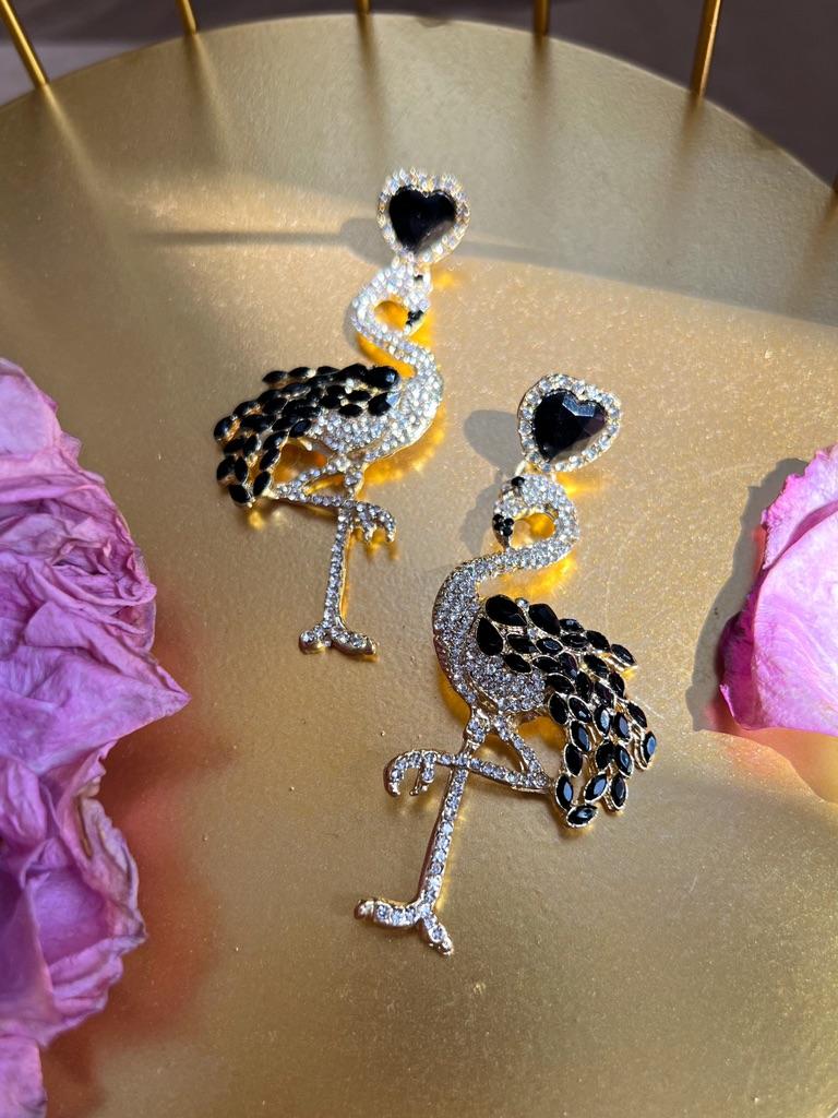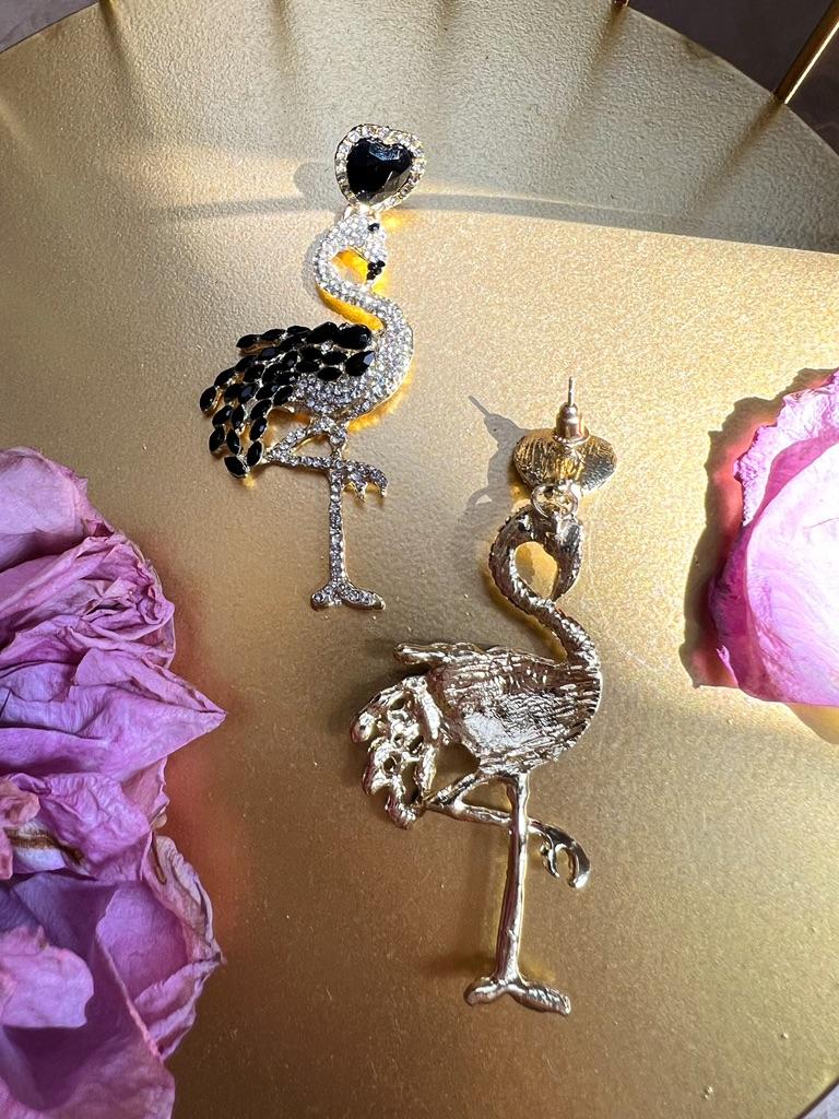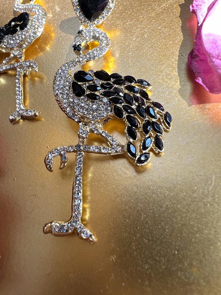 Kolczyki damskie Spersonalizowane kolczyki flamingi Długie kolczyki z kryształkami w stylu retro Przesadne kolczyki ze stopu