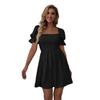 Elegancki kwadratowy kołnierzyk letnia sukienka kobiety wzburzyć krótki rękaw plisowane krótkie sukienki Party Sweet Casual-line seksowne ubrania 25157