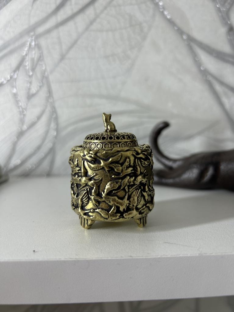 Seria Vintage antyczny mosiądz drzewo sandałowe kadzidło palnika żuraw kot pokrywa kadzidło palnika dekoracja wnętrz biurko akcesoria do dekoracji figurki