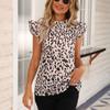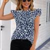 Moda wzór w cętki bluzka damska koszula dorywczo luźna odzież 2023 topy pół wysoki kołnierz płatek rękawy niebieskie koszule 24909