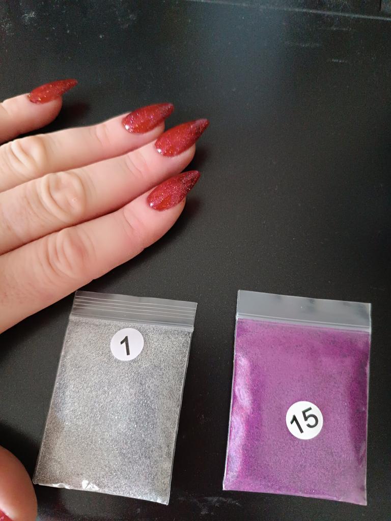 Wszystko w porządku, torebka jest pełna, hermetycznie zamknięta, iskierki są małe, holograficzne, jestem bardzo zadowolona z produktu, bardzo duże opakowanie.