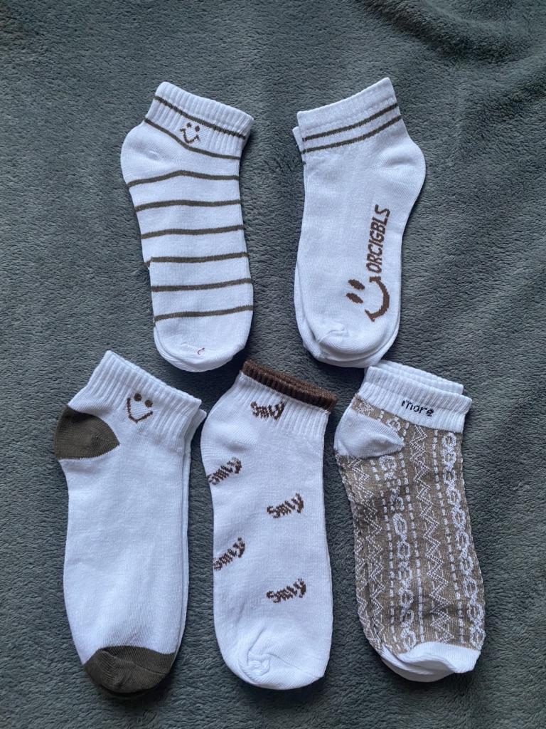 5 par skarpet z uroczym nadrukiem uśmiechu, wygodne i miękkie skarpety sportowe z załogą, damskie pończochy i wyroby pończosznicze