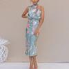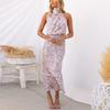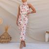 Vintage elegancki nadruk satynowe sukienki damskie letnie szaty bez rękawów seksowna kwiecista sukienka kobieta linia nocna impreza Halter sukienki 25768