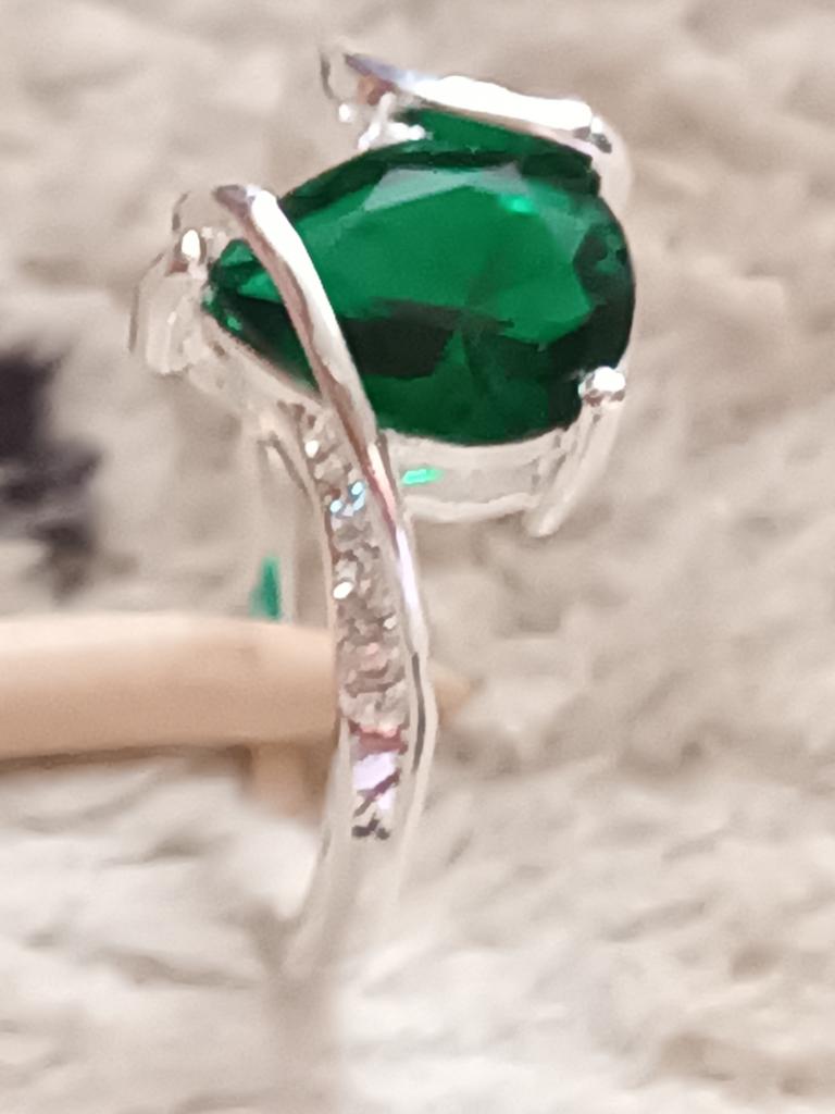 Piękny srebrny pierścionek z jaskrawym zielonym kamieniem. Blask i szyk! Dziękuję ☺️ polecam!!!