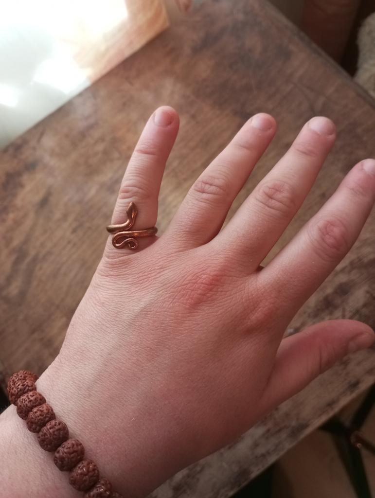 Sarpa Sutra: średniej wielkości zwinięty miedziany pierścień węża, Sarpa Sutra Consecrated Snake Ring Copper Metal (Średni rozmiar), Życie Izy