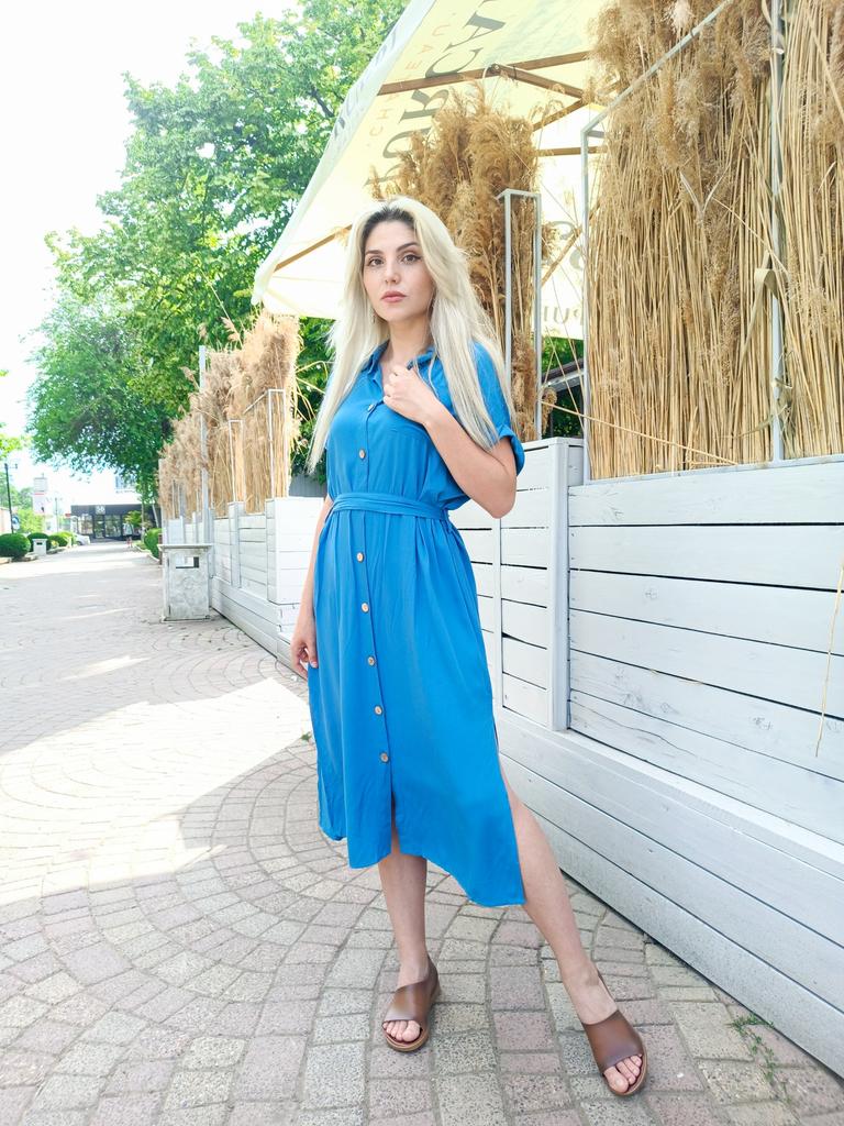 Damska letnia, rozkloszowana, jednorzędowa, zasznurowana sukienka jednorzędowa z kołnierzykiem