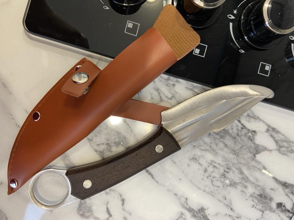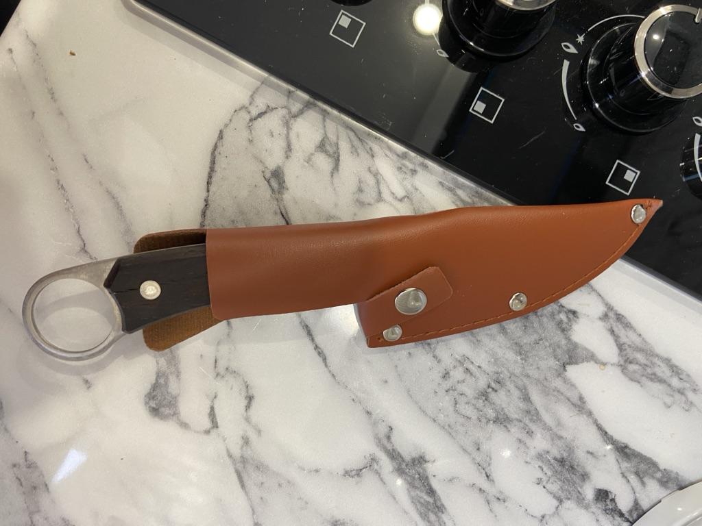 Otrzymałem go na czas, nóż i piękne dzieło sztuki, wykonane z niezwykłą jakością, a materiały użyte w branży są wysokiej jakości. Ostrze jest ostre w cięciu, a ramię wygodnie leży w rękojeści. Zapewnia dobrą kontrolę podczas krojenia trudnych przedmiotów, takich jak mięso.