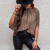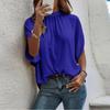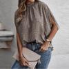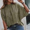 Koszule damskie 2023 Lato Casual Jednolity kolor i nadruk Bluzka Moda Podzielone Krótkie rękawy Bluzki Okrągły kołnierz Ubrania 26305