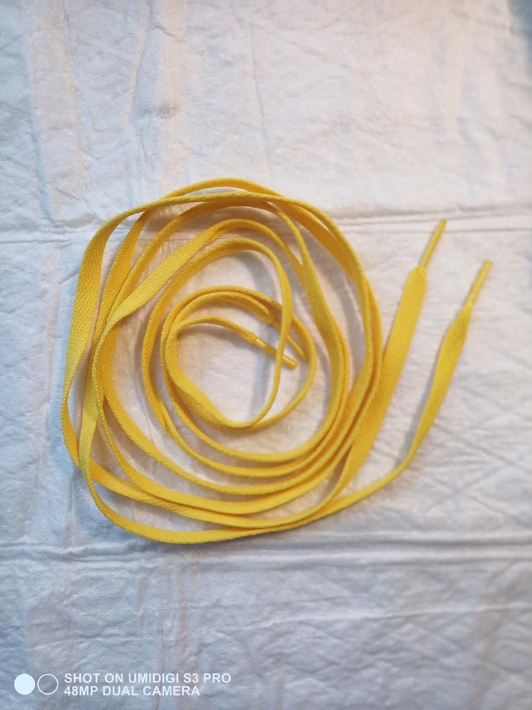 Ładne jasne (nie cytrynowe, nie musztardowe, ale żółte) sznurówki. Ich długość waha się w granicach 110 - 150 cm.