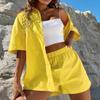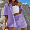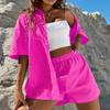 Fashion Casual 2 częściowe zestawy damskie letnia bawełniana koszula i szorty garnitur z krótkim rękawem jednokolorowa długa bluzka eleganckie stroje 26299