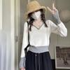 1. funkcje: Jesienna, casualowa, z długim rękawem, luźna, prosta, uniwersalna, z dekoltem w kształcie litery V, t-shirt, dzianina, płaszcz bazowy, zwykły top.