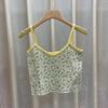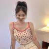 Francuski dekolt w serek Wąski Krótki Top Kobieta Słodki Kwiat Dzianinowy Podkoszulek Kobieta