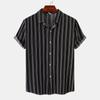 Moda męska Casual Hawaiian Vacation Print Top Striped Plaid Beach Shirt z krótkim rękawem