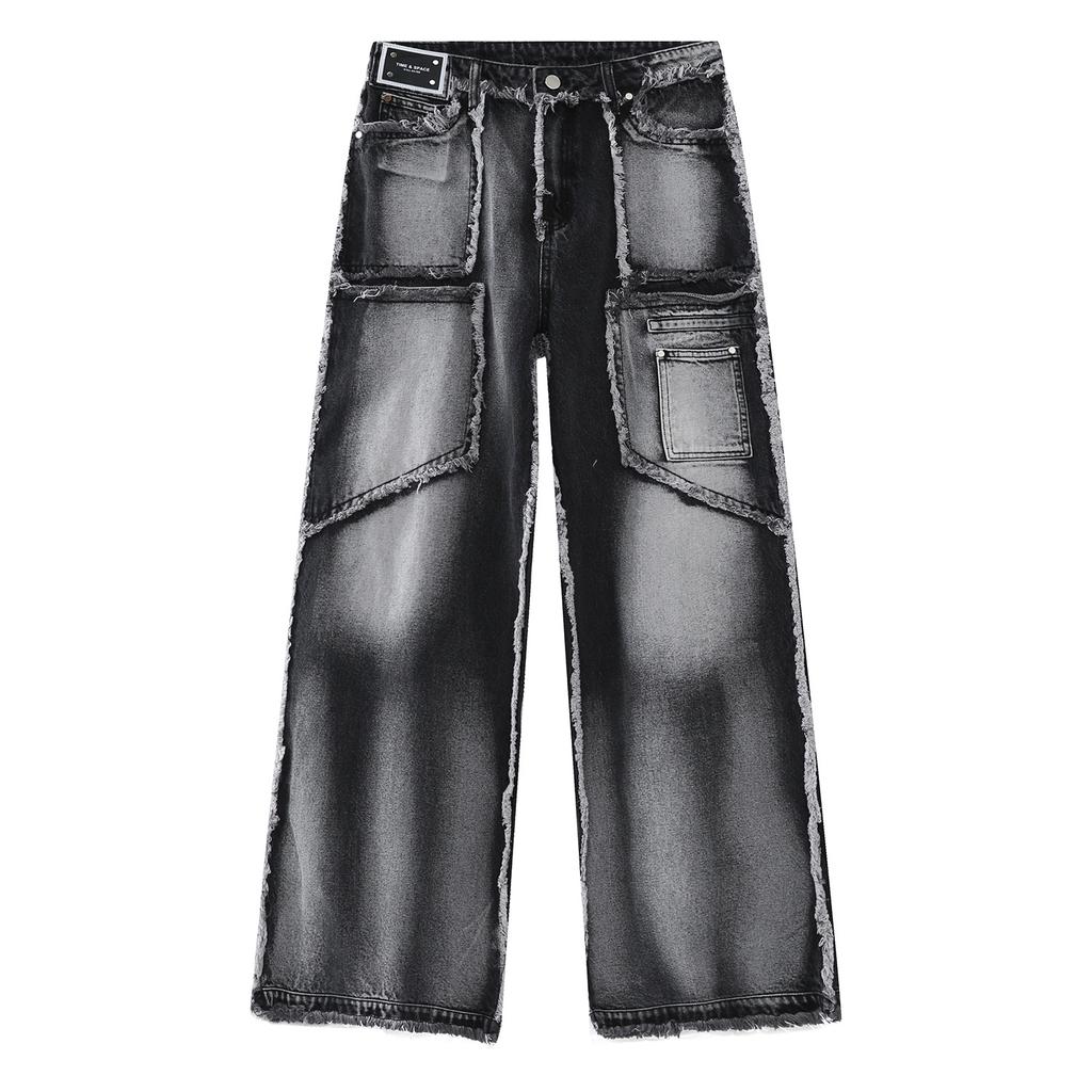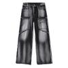 Męski nowy produkt w stylu retro, ze starymi, spranymi krawędziami i prostymi rękawami, łączonymi dżinsami