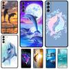 Niebieskie morskie zwierzę słodkie delfiny szklane etui do Samsung Galaxy S21 S20 Ultra S10 Plus Lite S20fe 5g S10e S9 S8 zderzak etui funda