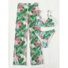 Liście drukowane ze spodniami plażowymi Bikini damski strój kąpielowy kobiety stroje kąpielowe trzyczęściowy zestaw bikini kąpiel strój kąpielowy pływać