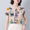 Szyfonowa koszula z kwiatowym nadrukiem Letnia, luźna bluzka damska z krótkim rękawem i dekoltem w kształcie lalki
