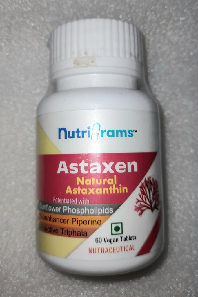 Astaksantyna 10% (Astaksantyna 10%) – 80 mg, ekstrakt Triphala (amla, bibhitaki, haritaki 1:1:1) (ekstrakt z triphala: Amla, Baheda, Harad 1:1:1) – 374 mg, Piperyna Bioenhancer (Biowzmacniacz Piperyny) – 30 mg, Fosfolipid słonecznikowy (fosfatydylocholina) (Fosfolipidy słonecznikowe (fosfatydylocholina) – 16 mg, Substancje pomocnicze (Substancje pomocnicze) - wymagana ilość (Q. S.).