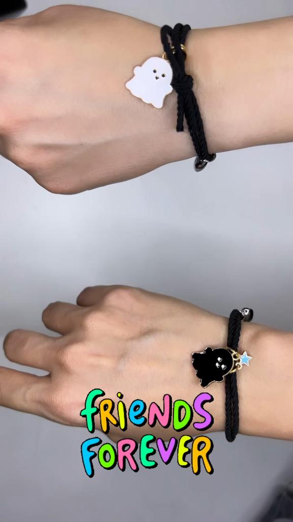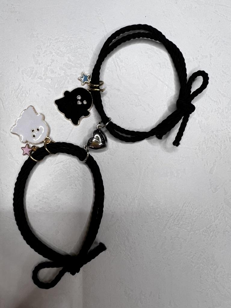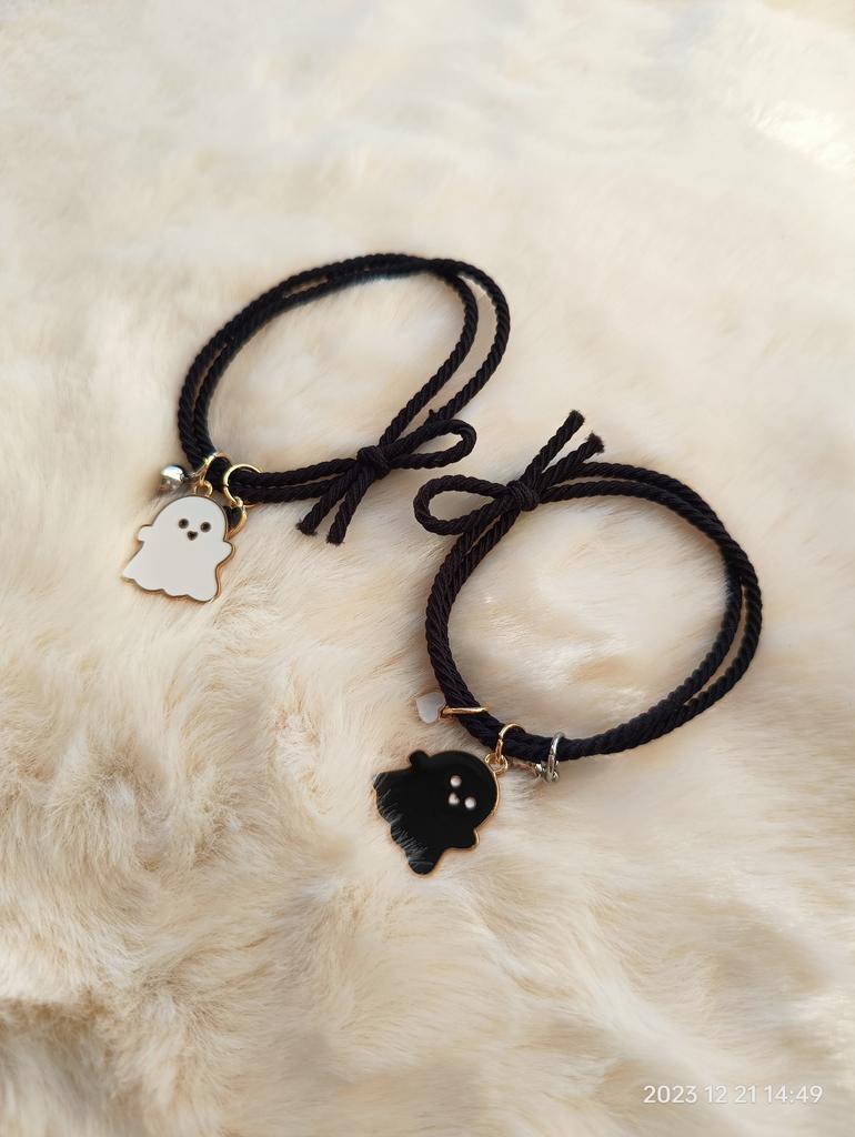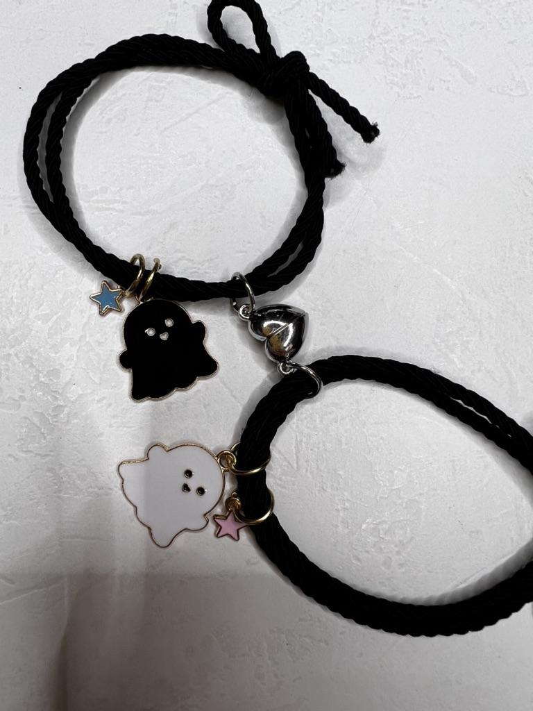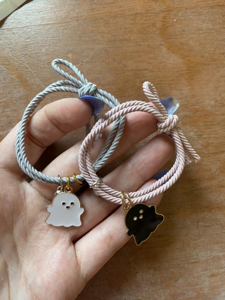 Miło mnie zaskoczyli🥰 Bransoletka jest typu sznurkowego, ale jest gumowa, dość gruba, bardzo ładnie wygląda z tą 🎀 kokardką, bardzo mi się podoba 🥰 Idealny dla każdego rozmiaru, ponieważ jest regulowany Na prezent 🎁bardzo ładne 😍 i oryginalne Ma detale takie jak serce ❤️ w różnych kolorach 🌈 gdzie 👻 czarny duch 🖤 serce odpowiada kolorowi wisiorka, a drugie jest białe 🤍 Jest wspaniale 💥 Tworzą serce ❤️ w środku 💔 zapałkę, która łączy się za pomocą magnesu 🧲 sklejanie bransoletek 💯 Wydaje mi się to mega oryginalne Dobra jakość 💯 w przystępnej 🤑 cenie Polecamy w 100% 💯