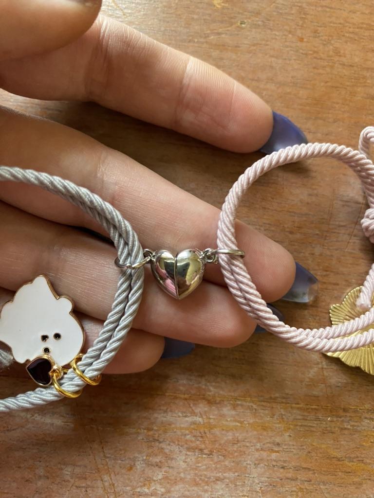 Jakie ładne pasujące bransoletki 🤍 szara opaska dopełnia całości i otrzymaliśmy zawieszkę w kształcie serca, którą możesz sama przyczepić!