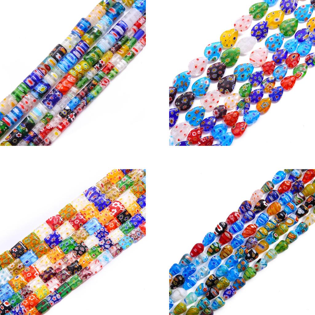 Kolorowy cylinder spłaszczony prostopadłościan w kształcie kropli wody koraliki luźne Lampwork przeszklone koraliki szklane do samodzielnego tworzenia biżuterii