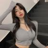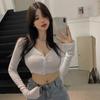 funkcje: Dekolt V, obcisły dla kobiet, chudy, guziki, kardigan, vintage, długie rękawy, krótki T-shirt