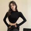 funkcje: T-shirt z pół zabudowanym dekoltem, długim rękawem, damski, nieregularny, slim, podkoszulek, seksowny, krój skrócony, top