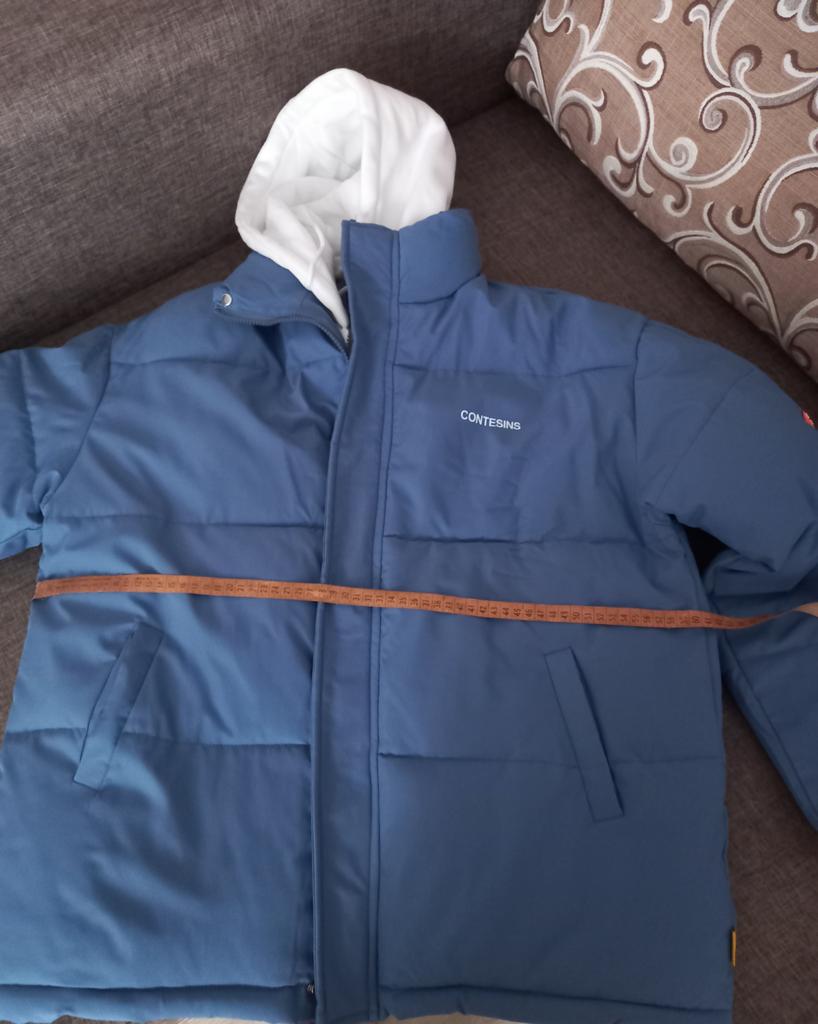 Objętość klatki piersiowej nie pasuje, rzeczywisty rozmiar dla tego rozmiaru to 114. Wewnątrz biały materiał jest pokryty żółtymi plamami. W czarnych plamach od palców. Na masce znajdują się również żółte plamy. Z tyłu kurtki znajdują się duże plamy.