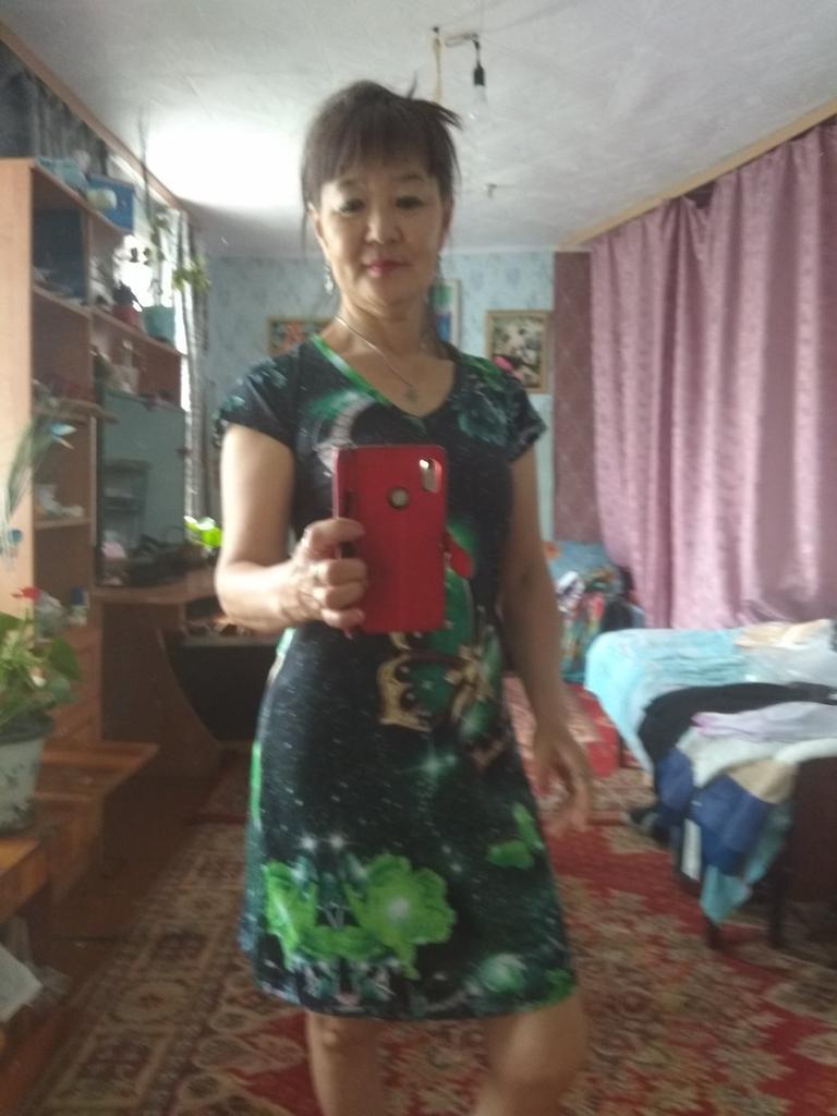 Rozmiar M pasuje na moją mamę, mimo że ma 52-54 lata. Tkanina jest miękka, jednak kolor nie jest tak jaskrawy jak na zdjęciu.